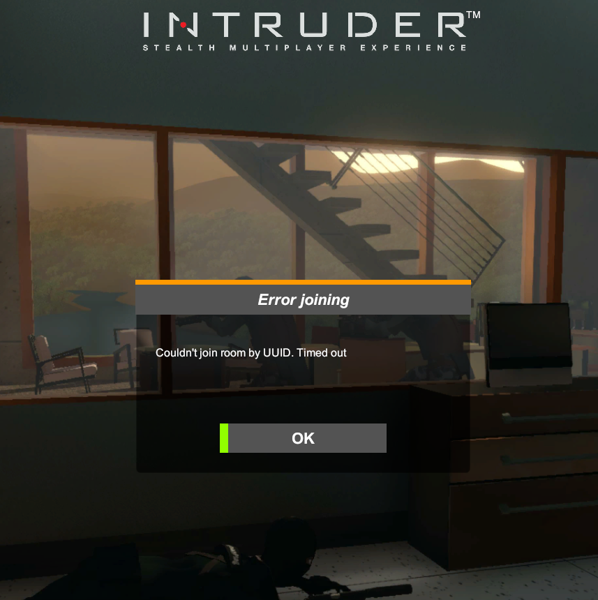 When I try to join I get a message which says: "Couldn't join room by UUID. Timed Out" . Tried reinstalling the game, and turning off the wifi router. The game worked before, a few weeks ago this issue appeared and I cannot play since.