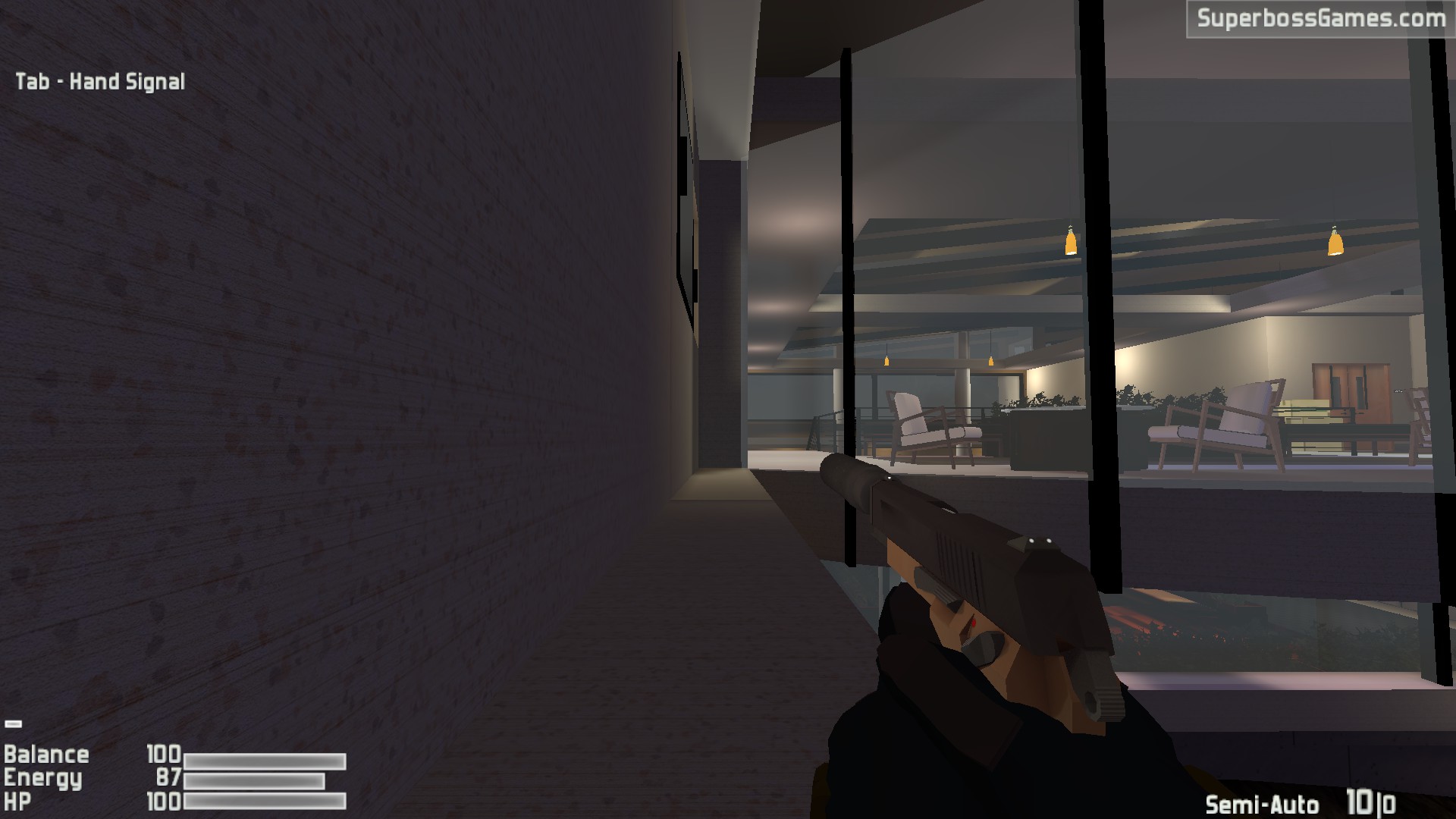 The ledge outside the large office on B1 has a small zone where if you move into it, everything seems to disappear. I've attached two screenshots to shot the area and the effect when moving into it.